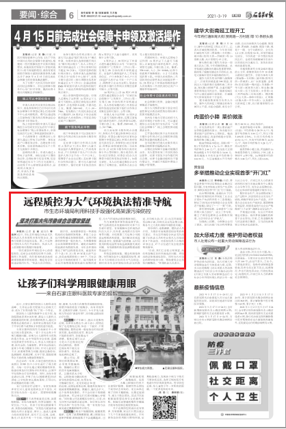 --摘自:石家莊日報,2021年3月19日第六版《遠程質(zhì)控為大氣環(huán)境執(zhí)法精準(zhǔn)導(dǎo)航》